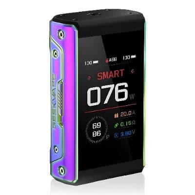 Discover the Geek Vape Aegis T200 Touch Screen Box Mod, featuring the AS 3.0 Chipset, extensive temperature control suite, and powered by two 18650 cells. Constructed from durable zinc-alloy, the chassis of the Geek Vape Aegis T200 Mod offers a strong and resilient form-factor against light falls and drops. In addition, the Aegis T200 Touch Screen Box Mod is the perfect box mod for those looking to chase clouds with delicious output that is sure to delight the taste buds. Outfitted with a 2.4" Touch Screen, the Aegis T200 Mod delivers intuitive operation and usage.